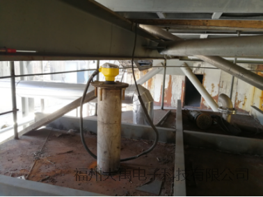 到了現(xiàn)場(chǎng),看到了罐子上的大禹西子一體式超聲波液位計(jì)。